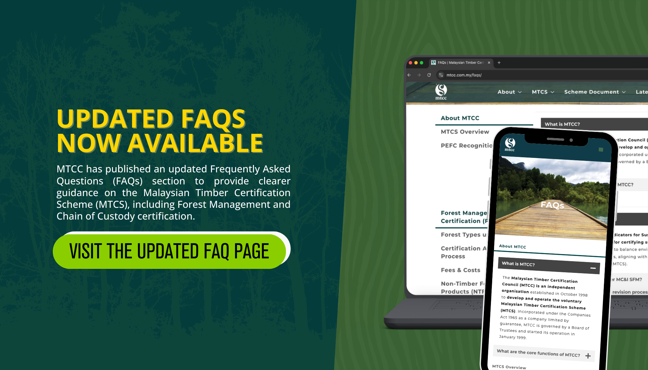 The MTCS is endorsed by PEFC, the biggest forest certification program globally, covering over 300 million hectares of certified forests worldwide.