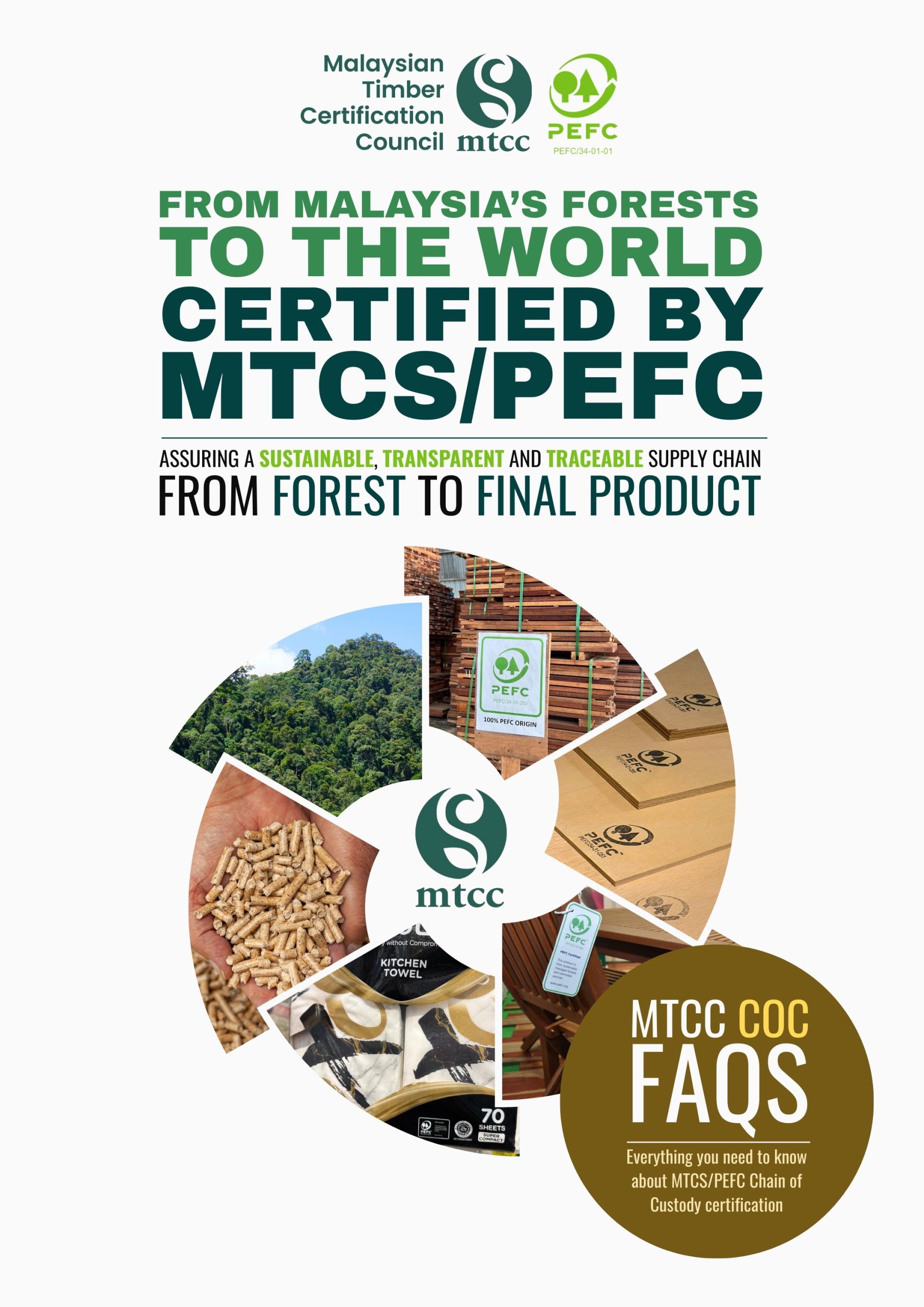 In addition to certifying forest management practices, MTCS includes Chain of Custody (COC) certification, which verifies the integrity of certified material throughout the value chain from forest to mill, processing, manufacturing, and export; thereby promoting sustainability and transparency in the timber supply chain. MTCS is endorsed by PEFC and widely recognized within the global PEFC network.